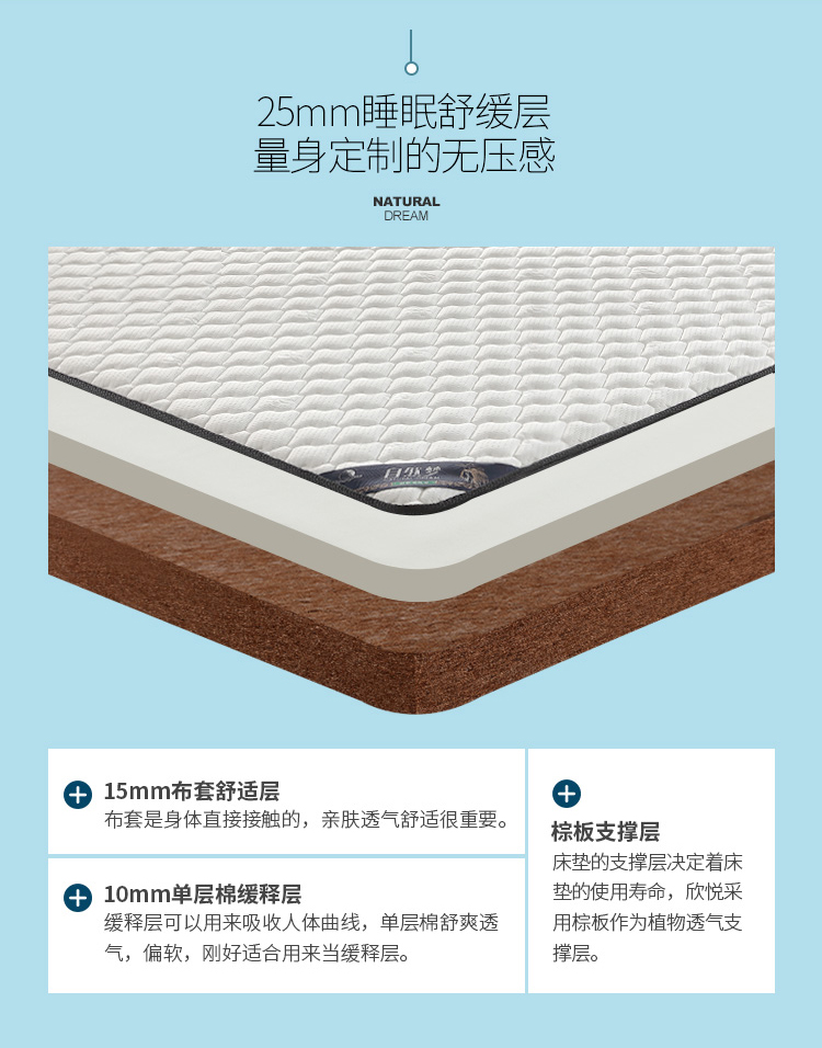 河北棕樂自然夢有限公司是一家生產銷售:山棕床墊、椰棕床墊的植物纖維彈性床墊企業(yè),擁有自動化生產工藝、標準化廠房,專業(yè)技術人員層層把控生產環(huán)節(jié),致力于為消費者打造強腰、護脊、易入睡的高品質產品!